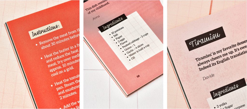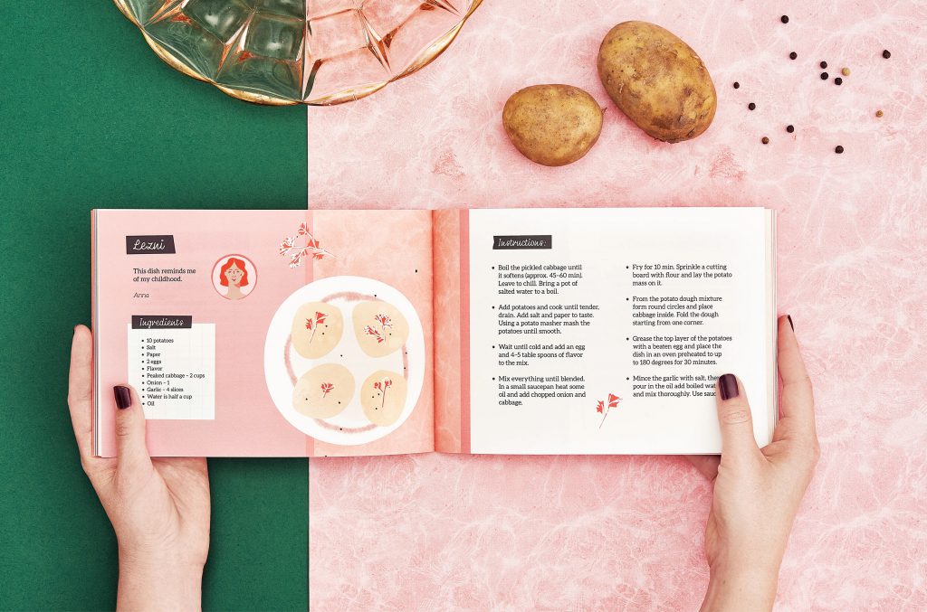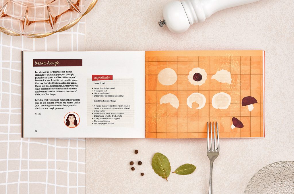 The project of a short cookbook filled with recipes from various countries and cultures. The book contains special traditional recipes from people working at Admind Agency. The project was designed from a scratch: from sketches and preparing illustrations to a printed version book and a photo session.