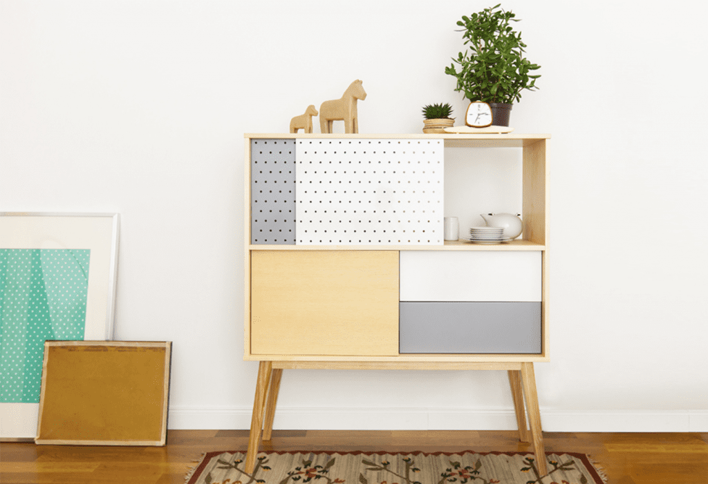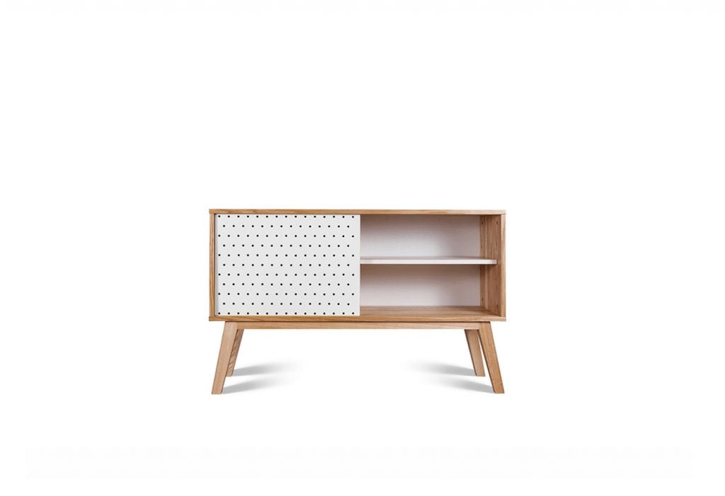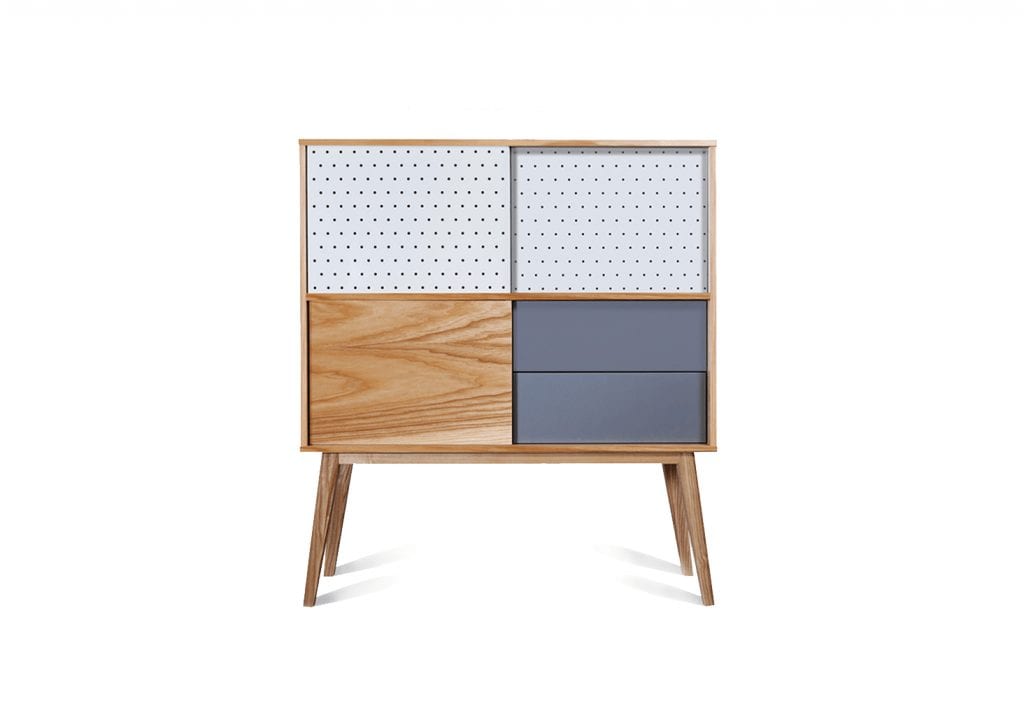 The series of dressers was designed thinking about users that favor both functionality and the possibility to match the furniture to one’s interior. The dressers can be personalized, by choosing the perforation pattern, colors of front drawers and doors, height of stands, and, most of all, the form of the piece itself. It comes in three shapes and sizes. The collection is supplemented by additional shelves, a newspaper holder made of perforated sheet metal and handles made of leather and copper. DO_M is a Polish brand that aims at meeting the needs of a demanding user. The furniture is produced in Poland. The collection was awarded the Must Have title and was a finalist in the Śląska Rzecz contest.