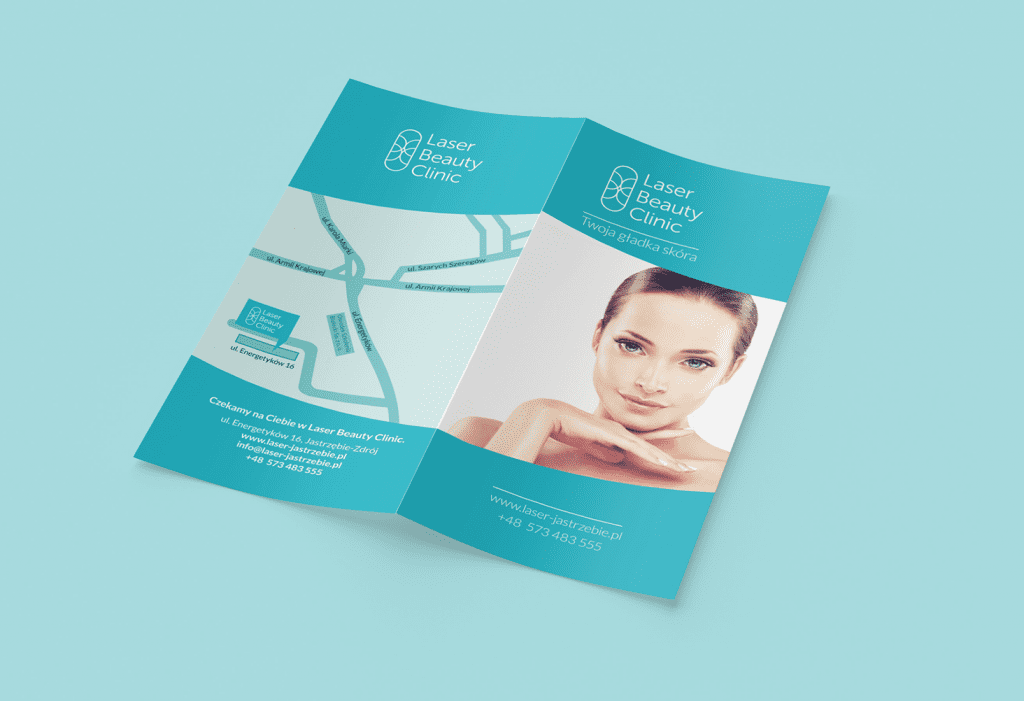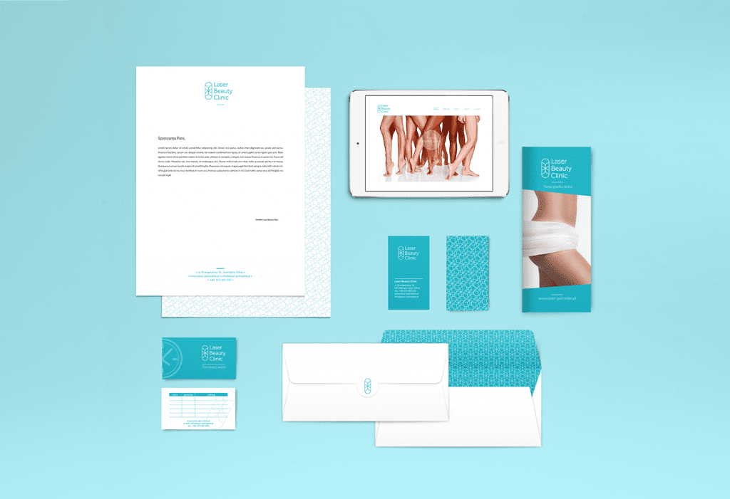 Visual identification for Laser Beauty Clinic – a beauty parlor. The project featured the logotype, brochures, fliers, banners, business cards, and letterhead. The distinctive pattern that appears in the materials has become a theme of Laser Beauty Clinic and can be seen on the parlor walls.