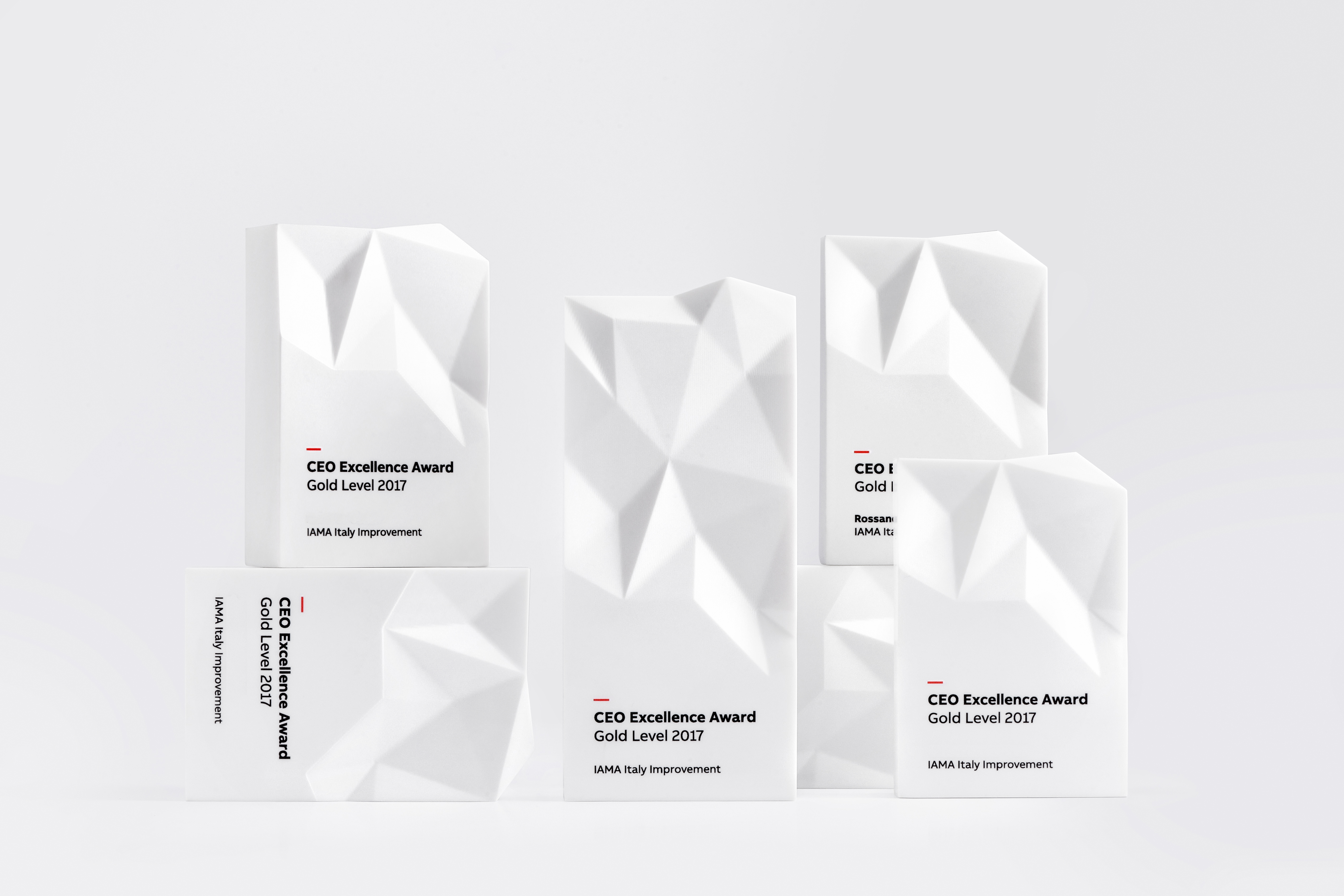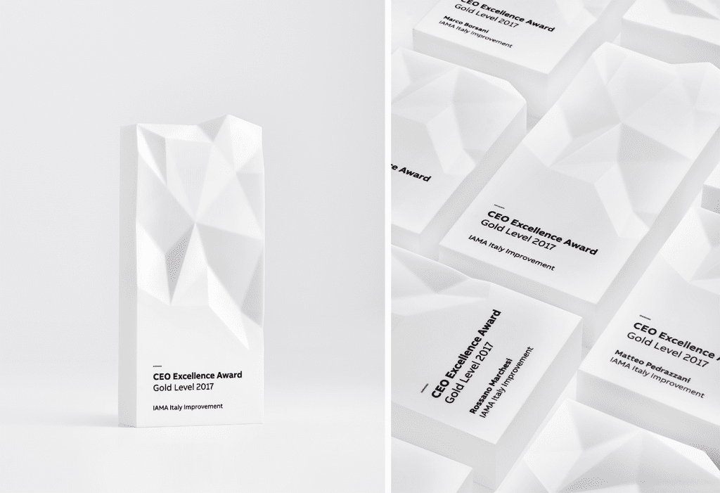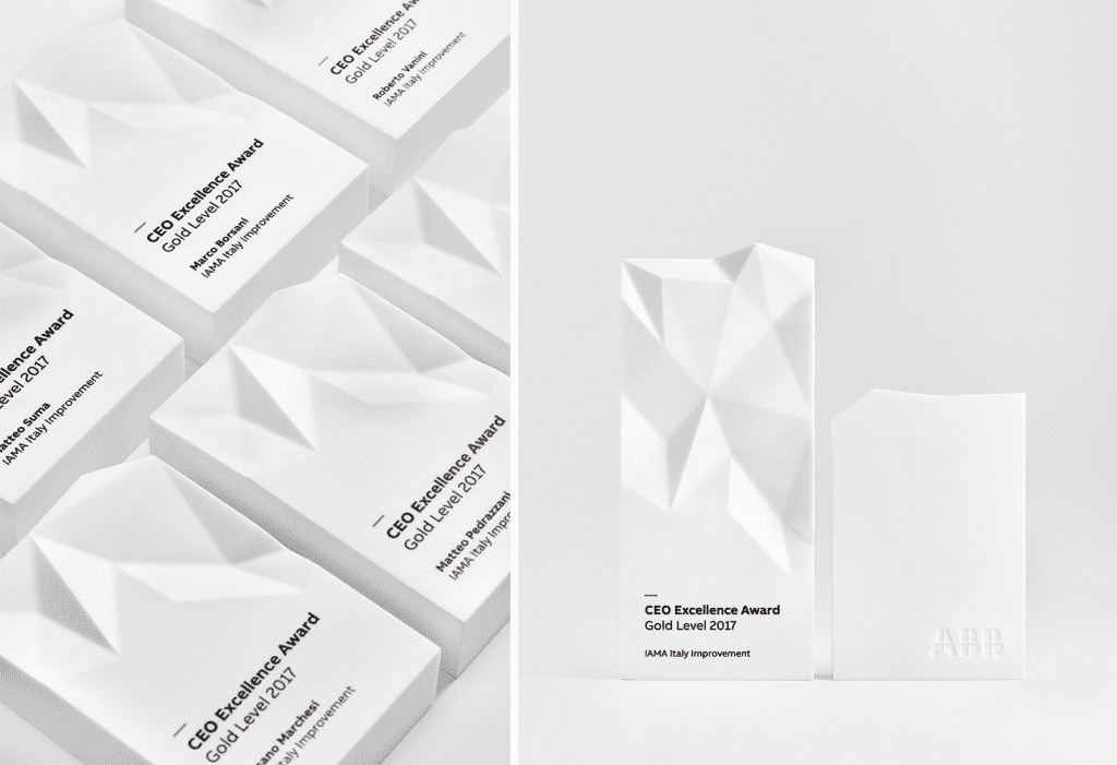 CEO statue was designed for ABB, one of the biggest international corporations operating in energy sector. CEO Excellence Award is given to the most effective ABB teams on an annual gala. The main goal was to design a statue that’s elegant, minimalistic, and refers to ABB’s brand identity. The pattern that is engraved on the front of the statue refers to graphics from the ABB’s Key Visual. The lower side is intended to hold the name and the category, in which the award was given. The trophy is made of corian, a precious material.